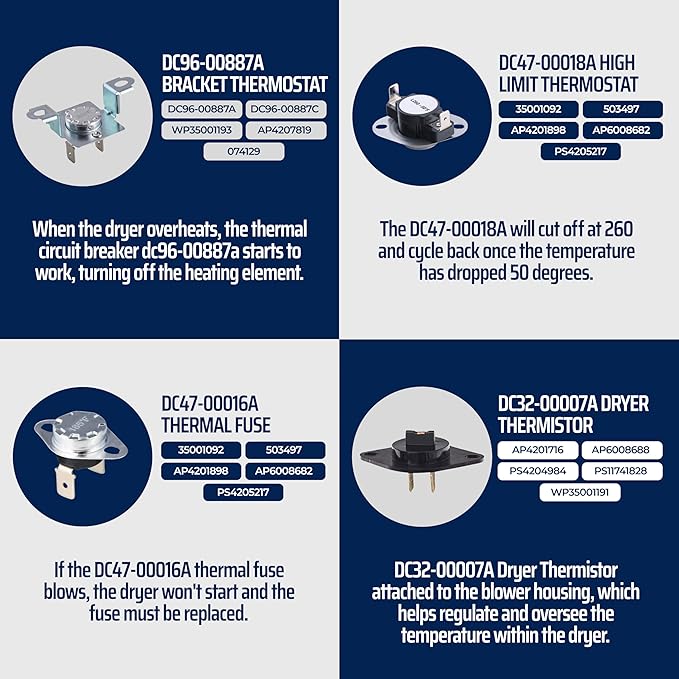 Dryer Heating Element Kit 4 components DC47-00016A, DC32-00007A, D696-00887A, DC47-00018A
